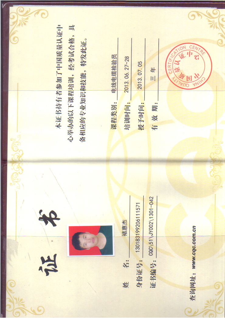 检验员证书