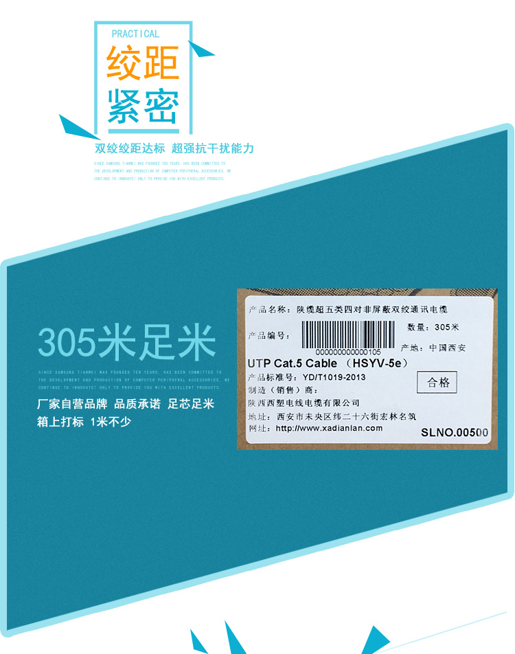 作为陕西第一家网线生产厂家,我们的超六类网线全系通过3C认证与ISO9001质量体系认证,提供原厂质保与技术支持,是您采购陕西网线的放心